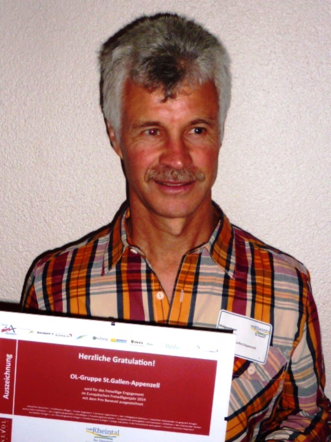 Zum zweiten erreichte bekanntlich die OLG St. Gallen/Appenzell letzten Herbst bei der Verleihung des Prix Benevol der Gemeinde Oberriet den zweiten Platz hinter der Mädchenpfadi aus Montlingen. Den treusten Helfern des Rheintaler OL-Cups wird nun in Montlingen als Dank ein Präsent überreicht.