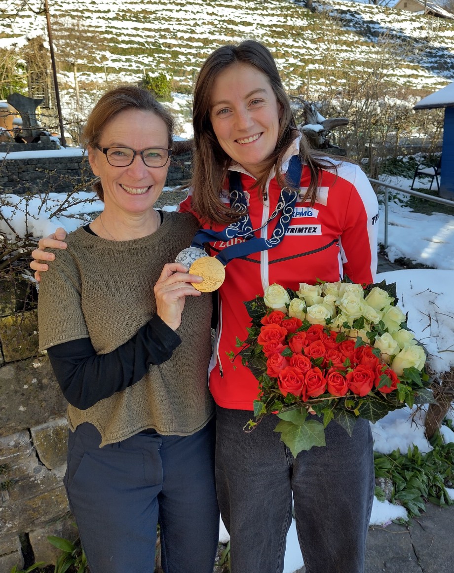Eliane weilte nach ihren Grosserfolgen an der Ski-OL-WM anfangs März, u.a. mit Gold und Silber, noch rund drei Wochen in Japan, ehe sie gestern im vertrauten Umfeld von ihren Erfolgen berichten konnte. Ihre Eltern stellten dazu eine eindrückliche Power-Point-Präsentation mit Fotos und Videos aus der Sportlaufbahn von Eliane zusammen. Eliane garnierte die Präsentation mit manch einer Anekdote.